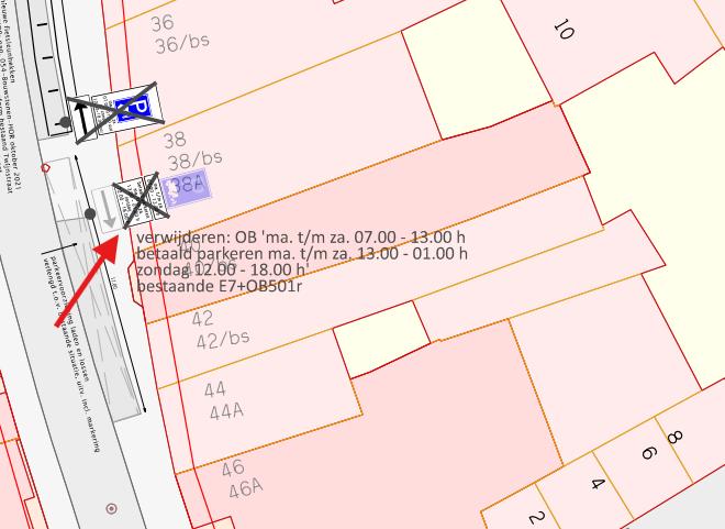 Intrekken: Gelegenheid bestemd voor het onmiddellijk laden en lossen van goederen (E7) volgens bijlage 1 van het RVV 1990 tevens parkeerverbod voor overige voertuigen met het onderbord ma t/m za 07.00-13.00 uur; betaald parkeren ma t/m za 13.00-01.00 uur en zondag 12.00-18.00 uur en de OB501r