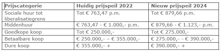 Om in thema 2 een passende woning voor iedereen te krijgen, wordt het nieuwbouwprogramma in gedeeld in categorieën. Deze categorieën zijn inmiddels als volgt aangepast: