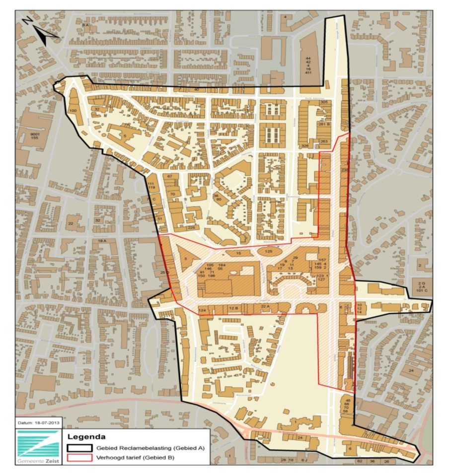 Kaart behorende bij de Verordening op de heffing en de invordering van reclamebelasting 2026