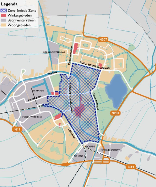 Figuur 2 Contouren nul-emissiezone; in dit figuur als “Zero-Emissie Zone” aangeduid.