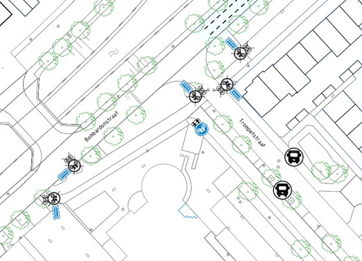 In deze nieuwe wegencategorisering is de Bombardonstraat aangewezen als GOW 30. Ondersteunend aan deze maatregel is het wenselijk om hier ook in de inrichting rekening mee te houden. Hierin is met name de herkenbaarheid van de GOW 30 van belang. Om deze reden wordt vastgehouden aan de ‘Handreiking voorlopige inrichtingskenmerken GOW30’ van het CROW uit mei 2023.