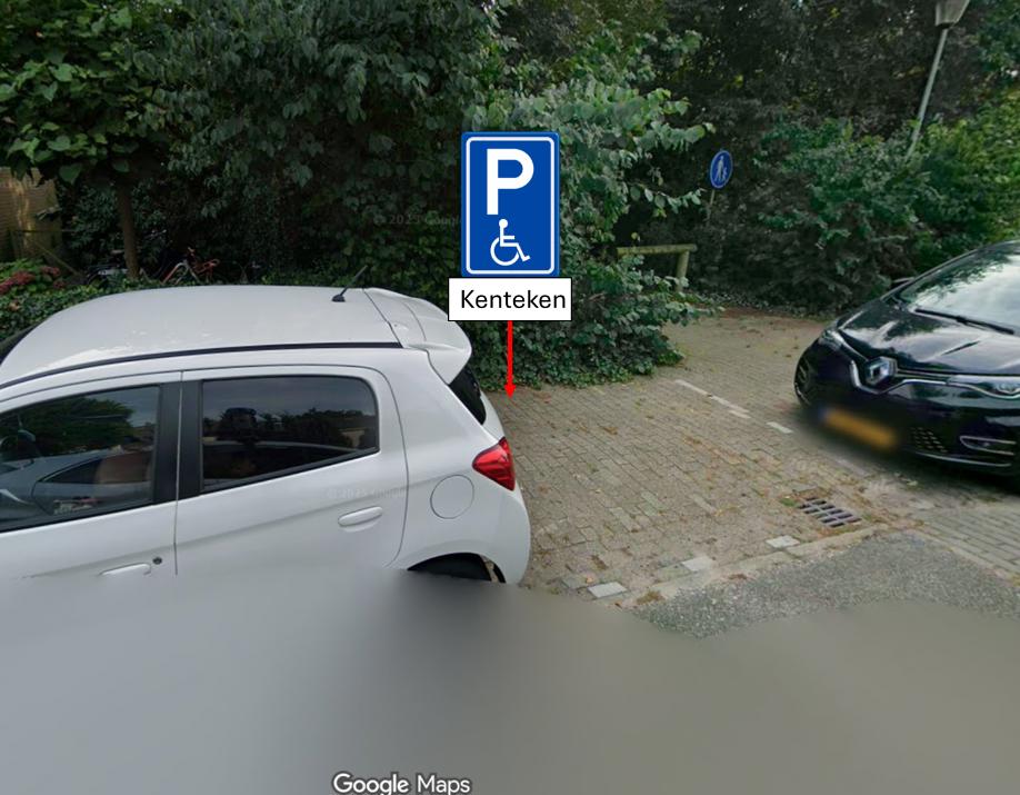 • een gereserveerde gehandicaptenparkeerplaats kan worden gerealiseerd door het plaatsen van het bord E6 ‘gehandicaptenparkeerplaats’ en onderbord met kenteken van de aanvrager;