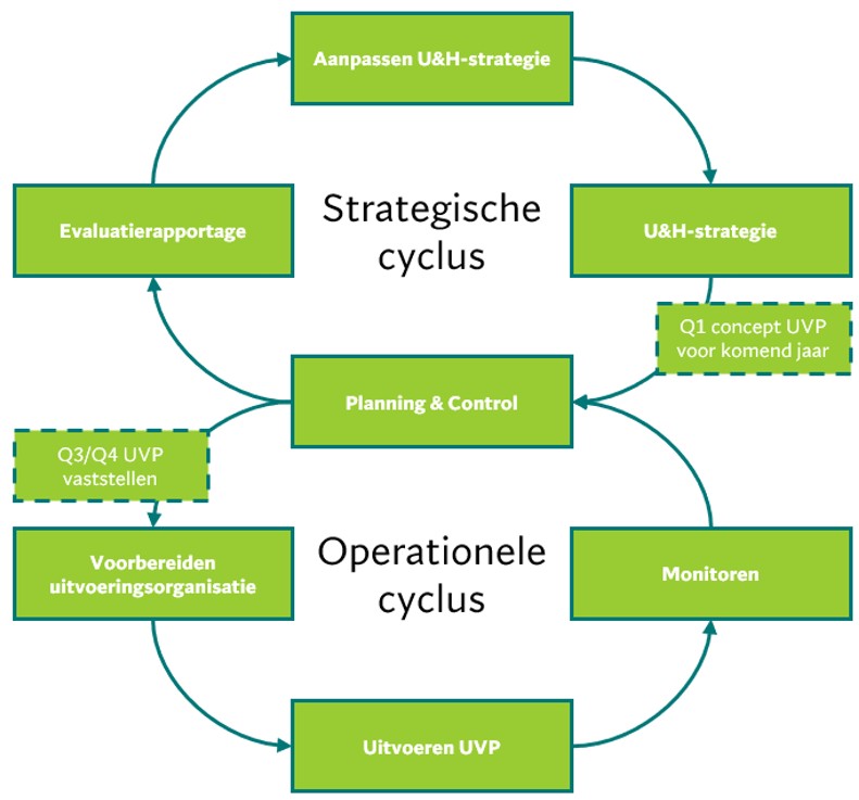 Het uitvoeringsprogramma vertaalt de strategische doelen uit de U&H-strategie naar concrete acties en werkzaamheden. Hiermee wordt invulling gegeven aan de wettelijke BIG-8-cyclus.