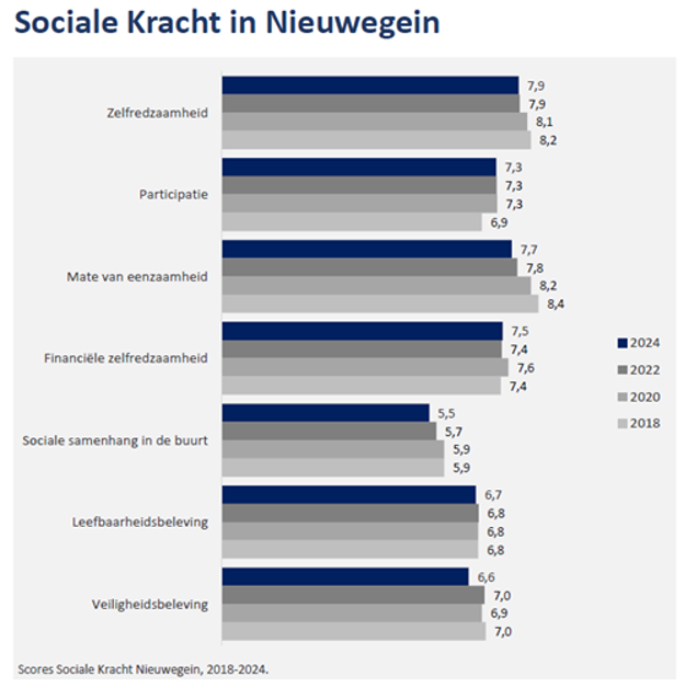 Inwoners geven zelf ook aan dat het kennen van je buren of buurtgenoten niet langer vanzelfsprekend is, maar ook dat ze dit jammer vinden. De verbondenheid met de omgeving neemt daardoor af of je kunt niet iemand even snel om hulp vragen. Onze monitor Sociale Kracht laat al een aantal jaar een dalende tendens zien op sociale samenhang in de buurt. In 2024 scoorden wij 5,5 en in 2018 5,9. Deze ontwikkeling wijst op een afname van sociale netwerken en een verminderde collectieve betrokkenheid.3
