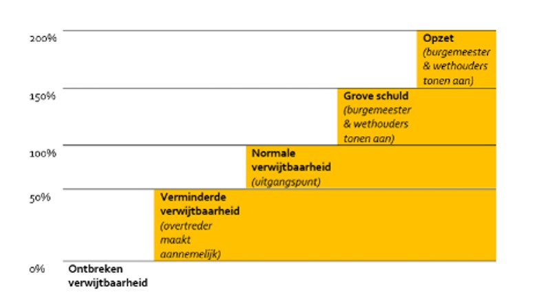 Als in afwijking van het eerste lid sprake is van een andere mate van verwijtbaarheid gaan burgemeester en wethouders in de berekening uit van de volgende categorisering: