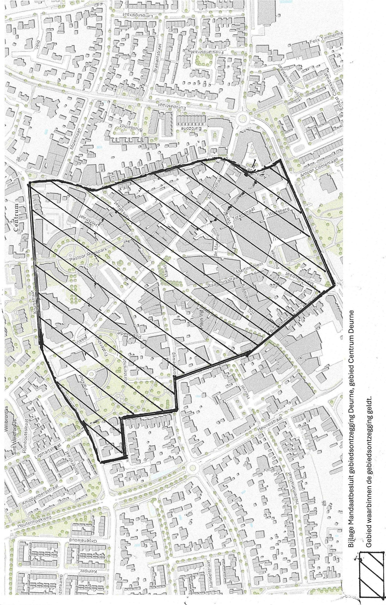 Dit verbod geldt voor de wegen in dit gebied en voor de in dit gebied gelegen, voor het publiek toegankelijke plaatsen en gebouwen. Ik verwacht dat u zich aan dit besluit zult houden. Daarmee voorkomt u dat de politie proces verbaal op zal maken wegens overtreding van deze gebiedsontzegging (op basis van overtreding van de Algemene Plaatselijke Verordening Deurne 2018).