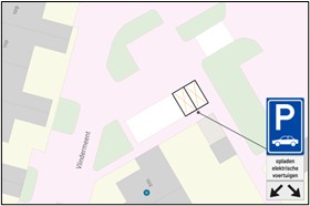 Een parkeergelegenheid nabij Vlindermeent 102 wordt gezien als een goede locatie voor het plaatsen van een oplaadpaal. Het is noodzakelijk bij de oplaadpaal twee parkeervakken aan te wijzen als parkeergelegenheid alleen bestemd voor het opladen van elektrische voertuigen - personenauto’s. Deze parkeergelegenheid wordt aangeduid door middel van bord E8 (personenauto) van bijlage 1 van het RVV 1990 met een onderbord met de tekst: ’uitsluitend opladen elektrische voertuigen’ en een pijlonderbord waaruit blijkt dat het bord bestemd is voor twee parkeervakken.