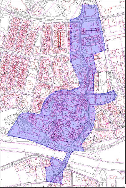 Het blauw gearceerde deelgebied van Ommen betreft het centrumgebied als bedoeld in artikel 2 van de ‘verordening reclamebelasting 2026’