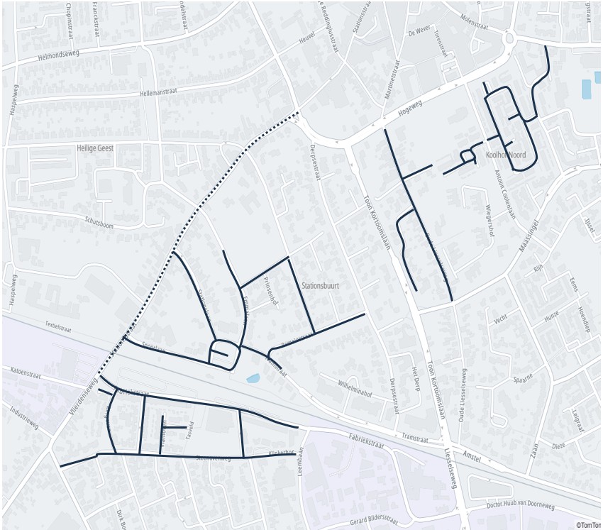 De blauwe zone is opgedeeld in twee gebieden (zie ook overzichtstekening nummer 2026-2):