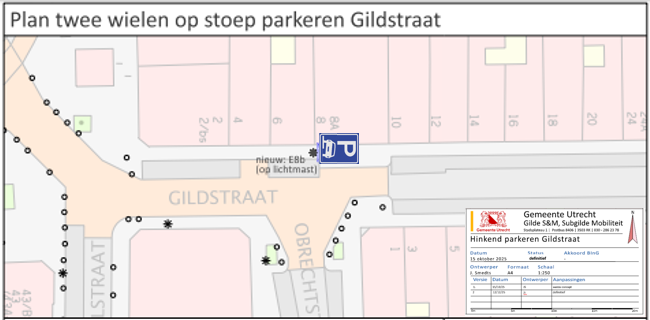 om te voorkomen dat bij incidenten de doorgang voor de nood- en hupdiensten weer geblokkeerd wordt, wordt het parkeren van voertuigen met twee wielen op de stoep op het smalste deel van de Gildstraat gefaciliteerd;