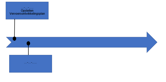 4. In onderstaande tijdlijn voegt de g emeente de data en beschrijvingen toe van de te maken stappen in het Vervoersontwikkelingsplan. Hiermee wordt zichtbaar gemaakt wanneer de (tussen)afspraken worden gemaakt, wanneer geëvalueerd wordt en wanneer het doel bereikt wordt.