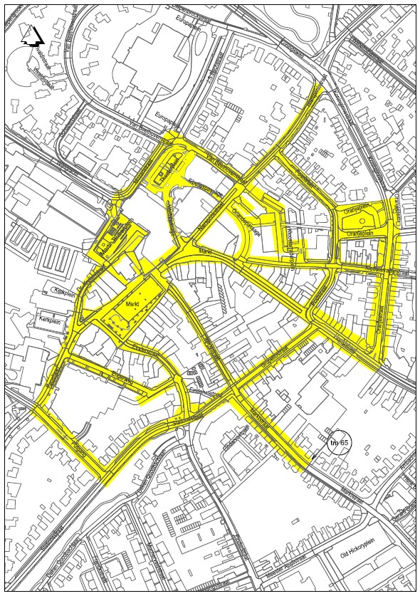 het aangewezen gebied in artikel 2 van de verordening, de straten, zoals aangegeven op de bij deze verordening behorende kaart betreffende Kerkrade Centrum, bijlage 2,