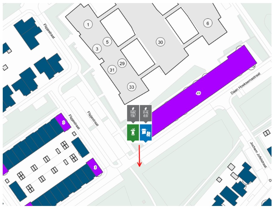 Aan de Daan Hoeksemastraat worden containers geplaatst, omdat in het Raadsbesluit RV722021 vastgelegd is dat inpandige containers verwijderd zullen worden. Wij bieden vervangende faciliteiten aan voor deze adressen in de vorm van ondergrondse containers. Er wordt geen rest+pmd-container aan de Marten Toonderlaan geplaatst, omdat niemand daarop aangewezen zal worden. |