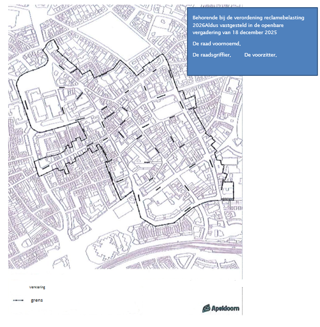 Onder de naam reclamebelasting wordt, binnen het gebied zoals nader aangewezen in de bij deze verordening behorende bijlagen 1 en 2, een directe belasting geheven voor een openbare aankondiging die zichtbaar is vanaf de openbare weg.