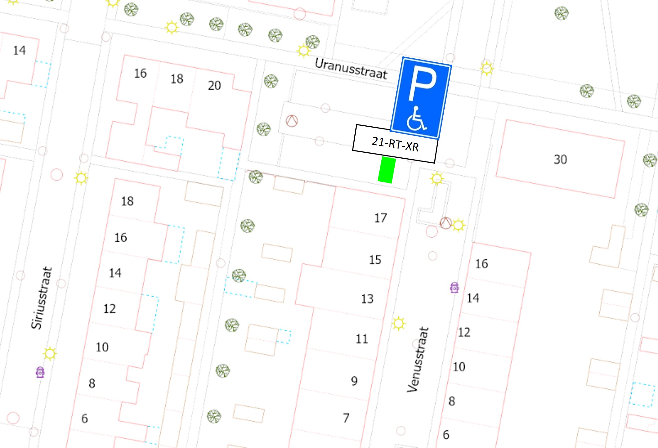Het aanwijzen en inrichten van een gehandicaptenparkeerplaats op kenteken aan de Venusstraat, door het plaatsen van het verkeersbord E6 van het RVV 1990 met onderbord met kenteken 21-RT-XR, zoals is aangegeven op de overzichtstekening in dit besluit.