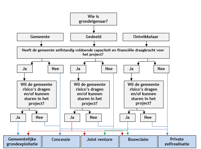 Voor de voorbereiding en uitvoering van een ruimtelijk project kan de gemeente een samenwerking aangaan met één of meerdere marktpartijen. Ook is samenwerking met andere openbare lichamen mogelijk. In dergelijke constructies deelt de gemeente de risico’s en de regie. Gezamenlijk wordt over het algemeen één grondexploitatie gevoerd. De gezamenlijke grondexploitatie van samenwerkende partijen heeft consequenties voor de eigen gemeentelijke begroting. Het betreft hier niet alleen financiële afspraken en resultaten, maar ook de risico’s die de gemeente als partner draagt.
