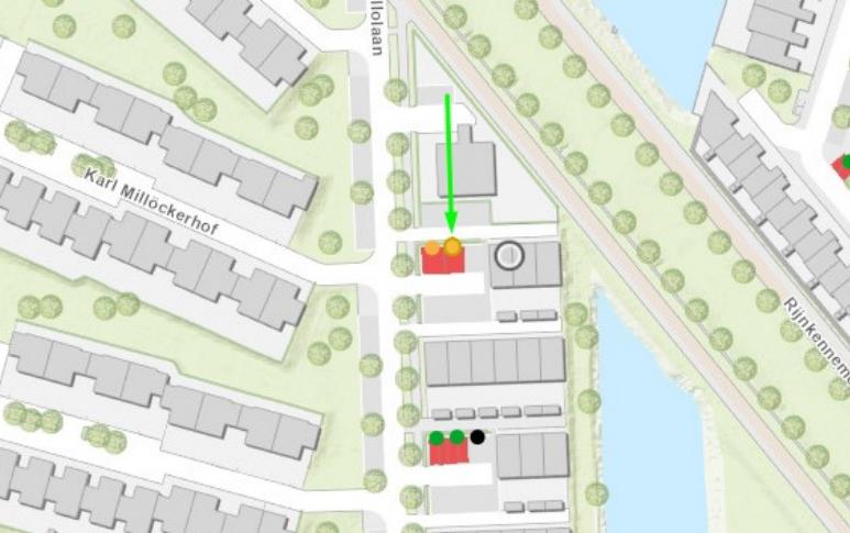 Walter Kollolaan (ter hoogte van huisnummer 175 tegenover Karl Millöckerhof 1; wegvak tussen Walter Kollolaan 156 en Jean Gilbertlaan)