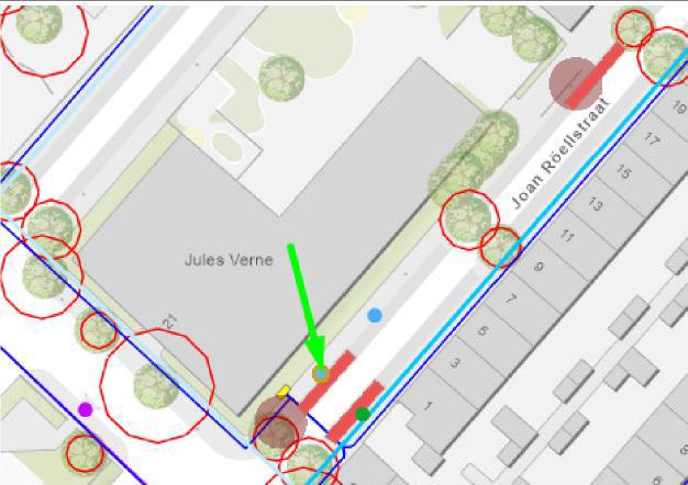 Joan Roëllstraat (ter hoogte van de zijkant van Mariëndaalstraat 21; aan de linkerzijde van het wegvak tussen Mariëndaalstraat en Royaards van den Hamkade)