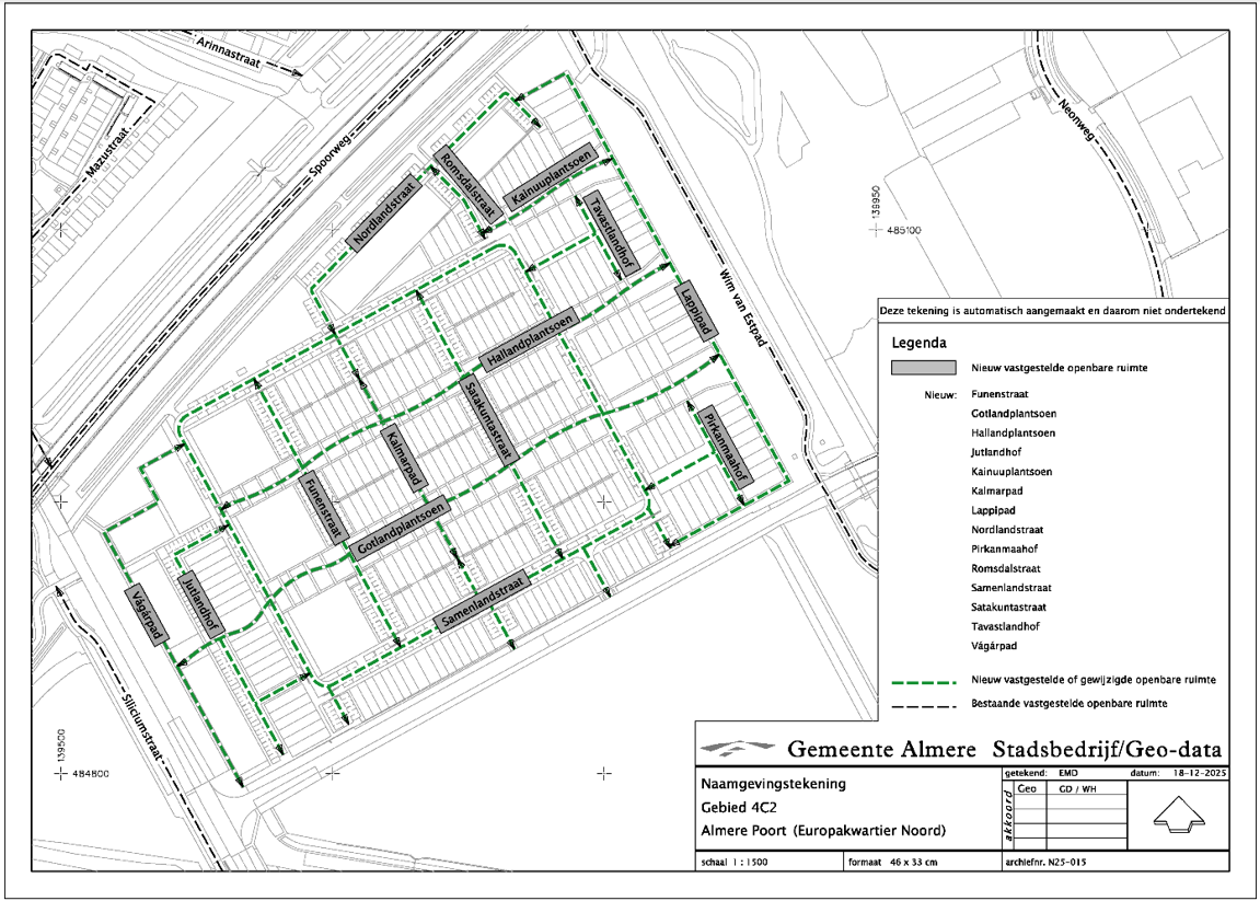 Situatietekening vaststellen diverse namen in Almere Poort