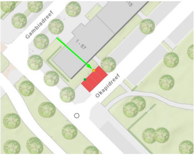 Okapidreef (ter hoogte van de achterzijde van de Gambiadreef 1; wegvak tussen Kwangodreef en Carnegiedreef)