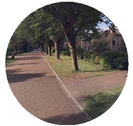 Klinkerweg met groene berm met bomen (referentie Burg. Arriensweg)