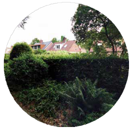 Groene zoom achter achtertuinen (referentie Averlose Houtweg)
