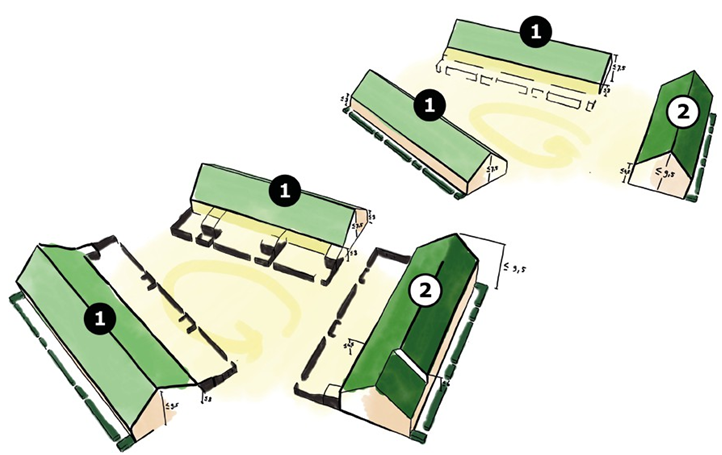 De veelzijdigheid van dit woningencluster, met de diversiteit in woningtypes en woonvormen, mag hier naar voren komen. Naast zadeldaken zijn hier ook platte daken toegestaan. Dit biedt bijvoorbeeld ruimte aan groendaken.