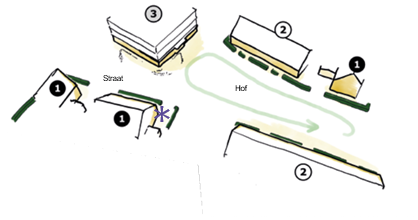 In het westelijke plandeel staan de woningen, ook de woningen aan de straat, met de voorzijde rond een openbare groene ruimte, een ‘hof’. De achtertuinen liggen richting de bestaande houtwal aan de noordzijde en de bestaande sloot aan de zuidzijde. Ook het appartementengebouw krijgt de entree aan de centrale groene ruimte. Het gebouw is echter ‘alzijdig’ vormgegeven, zodat het de kwaliteit aan alle zijden benut, maar ook aan alle kanten kwaliteit biedt.