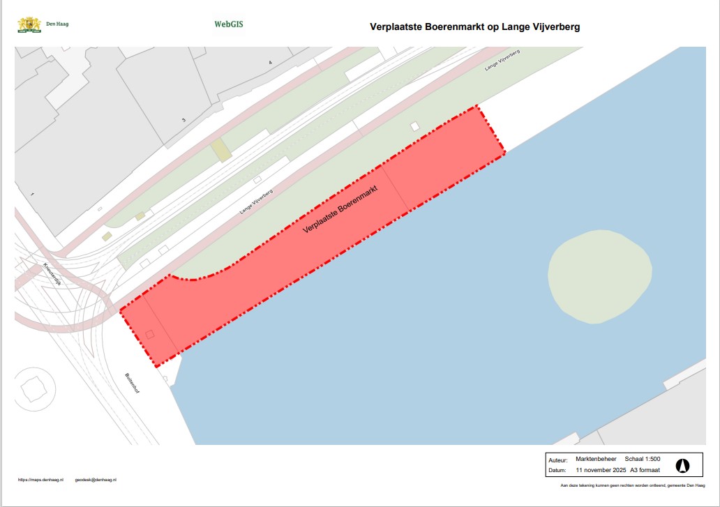 dat van woensdag 26 november 2025 tot en met woensdag 24 december 2025 iedere woensdag de Boerenmarkt in de zin van artikel 1:2 aanhef en onder g. van het Marktreglement Den Haag 2016 van 10:00 uur – 18:00 uur plaatsvindt op het terrein aan de Lange Vijverberg te Den Haag, zoals aangegeven op bijgevoegde tekening;