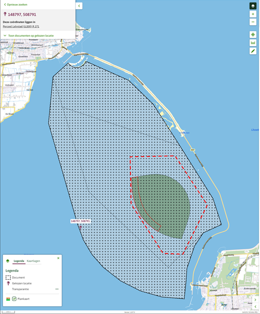 Zie bijlage voor: Figuur 1 Bestemmingsplan Marker Wadden met in het groen het bestemmingsvlak waar natuureilanden zijn toegestaan en met rode streepjeslijn de indicatieve beoogde nieuwe begrenzing.