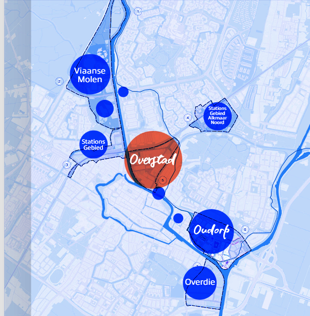 Overstad is met 255.000m2 een bedrijven- en winkelgebied in Alkmaar. Er is sprake van grootschalige winkels en perifere detailhandel (PDV) vlakbij de historische binnenstad. Een PDV-locatie zo dicht bij de binnenstad is uniek. Door met gebiedsontwikkeling in te blijven zetten op PDV blijft dit unieke pro- gramma aanwezig op Overstad.
