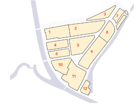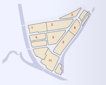 Het huiswaarderplein met rondom industriele complexen en ensembles
