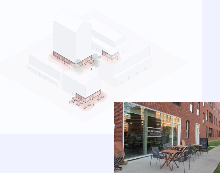 Kleinschalige maatschappelijke programma’s die volgend zijn aan de woningbouwontwikkeling kunnen overal op Overstad gerealiseerd worden. Afhankelijk van het type programma ligt deze zichtbaar aan de straat zoals een tandartsenpraktijk en gezondheidscentrum of meer geborgen aan een binnenhof zoals bijvoorbeeld een Kinderdagverblijf.