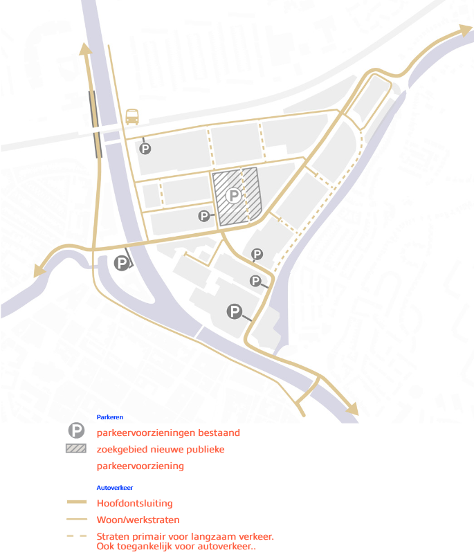 De bestaande verkeersstructuur en bereikbaarheid is voor dit Ontwikkelkader als gegeven beschouwd, de Stedelijke Mobiliteitsvisie geeft hierin de richting aan.