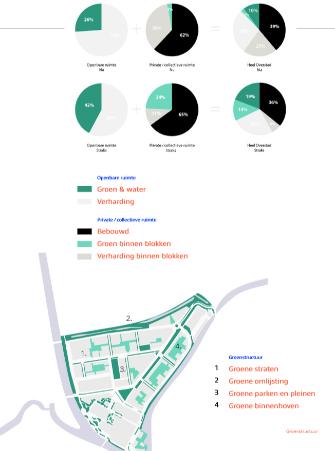 belangrijk onderscheidende kwaliteit van Overstad. Binnen Overstad wordt het collectieve en private groen sterk verweven met de stedelijke ontwikkeling, in een integraal concept wat leidt tot een ontspannen en soms verrassende groene sfeer.