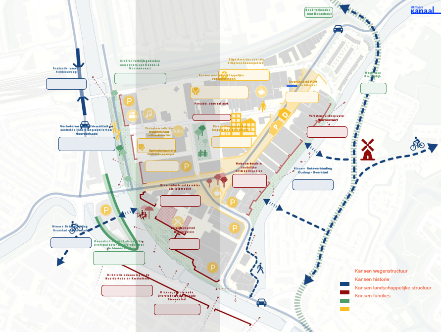 Om te kunnen voldoen aan de vraag naar woningen en om Alkmaar nog aantrekkelijker te maken, wordt er hard gewerkt aan het mogelijk maken van bouwen binnen de stad langs het Noordhollandsch Kanaal. Dit initiatief staat bekend als “Het Alkmaars Kanaal”. De plannen hiervoor zijn vastgelegd in de Omgevingsvisie Alkmaar 2040 (2017), het Omgevingsbeeld Kanaalzone en de Ontwikkelbeelden (2019). Het doel van de Omgevingsvisie is om gebieden om te vormen tot hoogwaardige woon- en werkgebieden met extra voorzieningen en groen.
