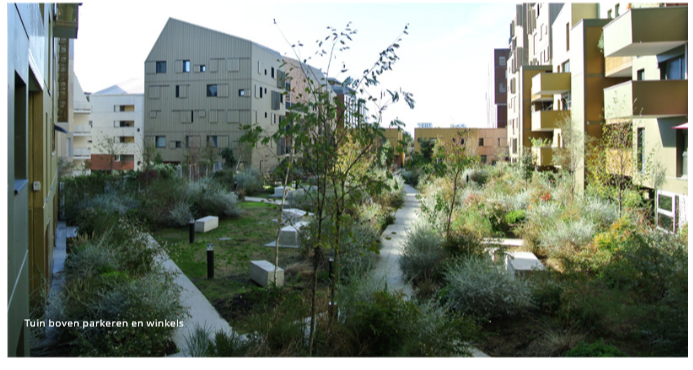 Op locaties waar uitsluitend woningbouw wordt gerealiseerd zijn overbouwde parkeeroplossingen voor de hand liggend. De randen van de parkeerplaatsen worden omzoomd met woon- of woon gerelateerd programma. Het dak zal een inrichting krijgen met opgaand groen waarbij wordt voldaan aan de eisen van klimaatadaptiviteit. Deze oplossing is overal voorstelbaar maar het meest waarschijnlijk in het ‘middengebied’ en de Kwakelkade.