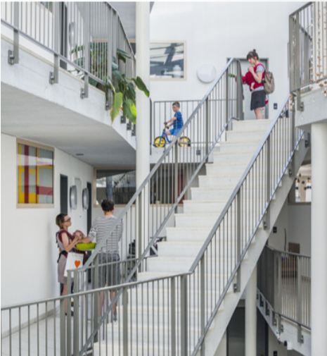 Deze plekken lenen zich bij uitstek voor de huisvesting van bijzondere doelgroepen zoals ouderen maar ook voor bijvoorbeeld gezinnen. De voordeur gesitueerd aan het autovrije groene hof. Hofwoningen kunnen zowel appartementen als grondgebonden woningen zijn of een combinatie van beide (beneden -bovenwoning). Met name de diepe blokken lenen zich goed voor deze typologie.