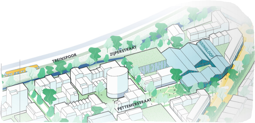 Een bazaarachtig dwaalmilieu door een reeks van hallen biedt ruimte aan kringloopgerelateerde winkels. Eenvoudige hallen met een of tweelaagse winkelvloeren bieden betaalbare winkelmeters. Het gebied rond Rataplan met de huidige kringloopwinkels, de kringloopboulevard, is hiervoor de meest aangewezen plek.