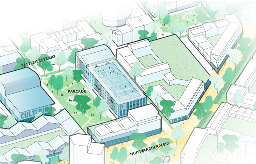 Een passende locatie, mocht een dergelijk concept haalbaar blijken, is aan het Huiswaarderplein.