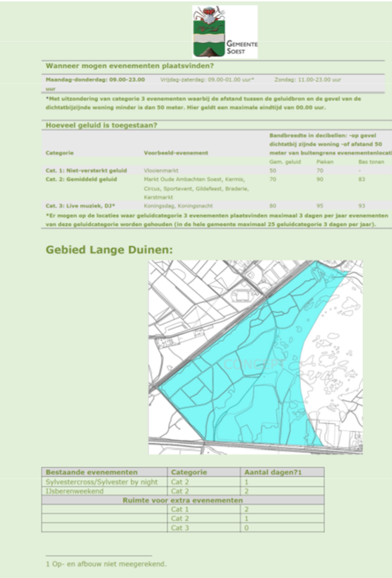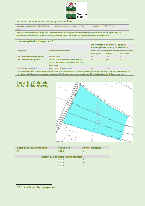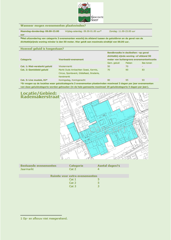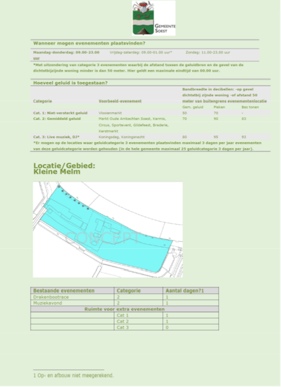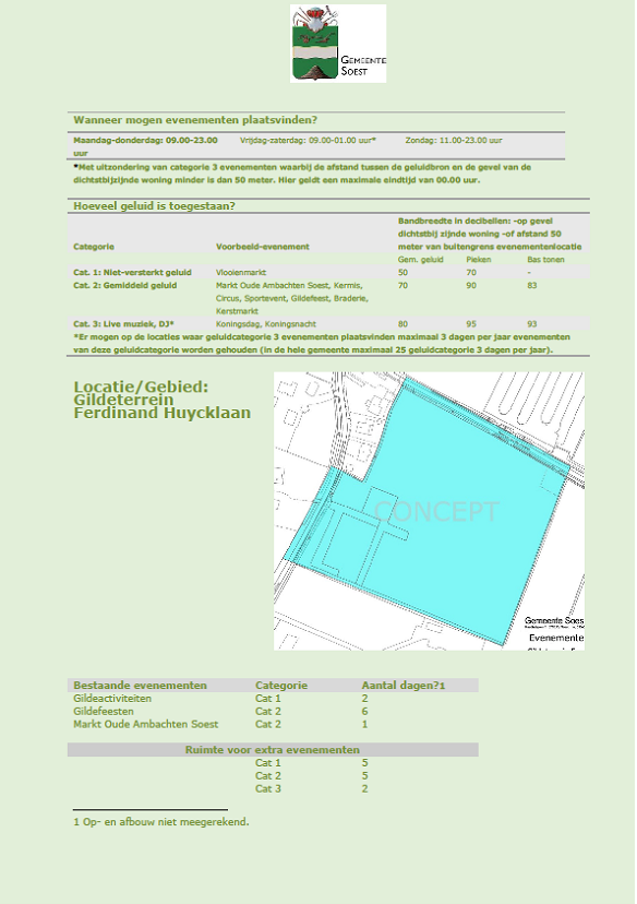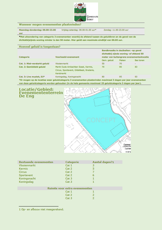Onderstaande geluidregels zijn van toepassing op het omgevingsplan van de gemeente Soest en hebben betrekking op geluidsemissies van evenementen, inpandige evenementen en festiviteiten bij horeca- en sportgelegenheden.