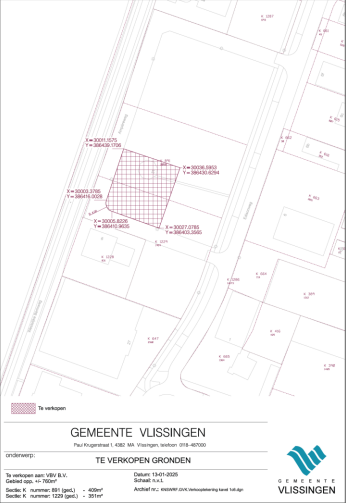 De gemeente Vlissingen (hierna de gemeente) is van plan om vanaf/na publicatieperiode van 20 dagen een koopovereenkomst aan te gaan met VBV B.V., dan wel een aan haar gelieerde onderneming, (hierna: VBV) voor het genoemde object, ter grootte van circa 760m². De koopovereenkomst dient aangegaan te worden vóór 1 juni 2025.