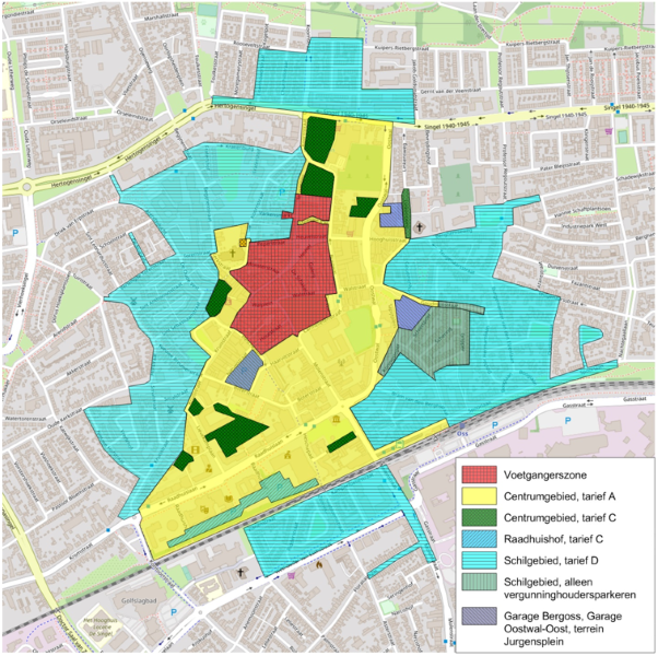 Aan te wijzen als plaatsen waarop slechts tegen betaling van belasting als bedoeld in artikel 2, onderdeel a en b, van de vigerende Verordening Parkeerbelastingen Oss in de kern Oss mag worden geparkeerd: