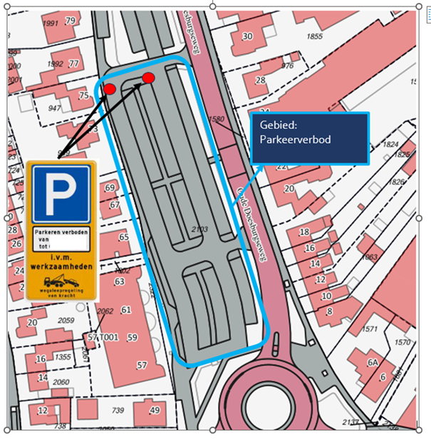 Het plaatsen van bord E04 van Bijlage I van het Reglement verkeersregels en verkeersborden 1990 met de tekst "Parkeren verboden" van 28 februari 2025, 07:00 uur tot 28 februari 2025, 20:00 uur, in verband met de verplaatsing van de weekmarkt en de werking van de wegsleepregeling, op de locaties zoals aangegeven op de bij dit besluit behorende tekening.