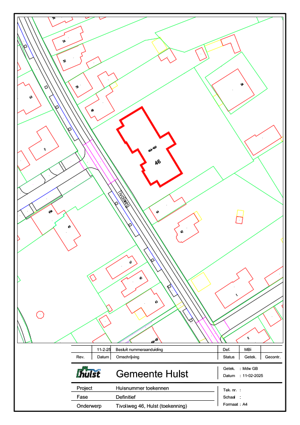 Er is een aanvraag ontvangen voor een extra huisnummer voor het appartementencomplex aan de Tivoliweg 46A t/m 46H in Hulst.