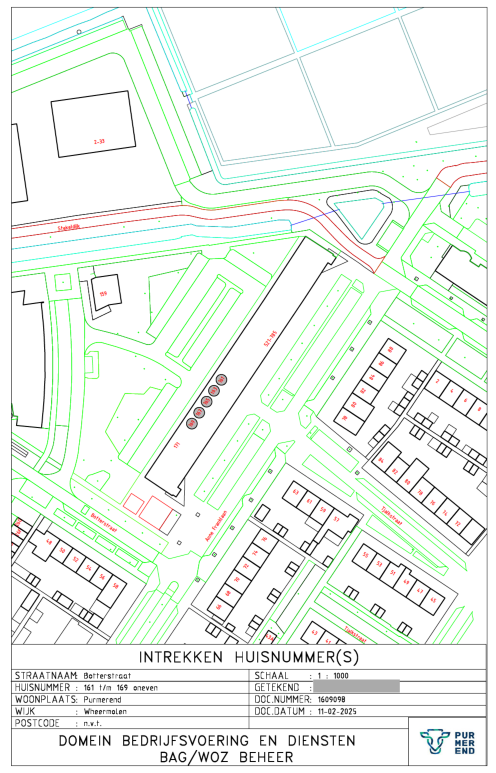 Kennisgeving huisnummerbesluit Botterstraat 161 t/m 169 (oneven) Purmerend