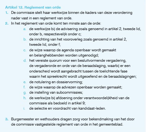 Werkwijze. Artikel 12. Reglement van orde, Verordening op de gemeentelijke adviescommissie; besluit vast te stellen het volgende reglement van orde: