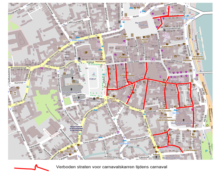 Gezien carnaval in Maastricht vooral buiten op straat, op pleinen en in de openbare ruimte wordt gevierd, is het noodzakelijk dat het terras binnen de singels verwijderd wordt gedurende de carnavalsdagen;