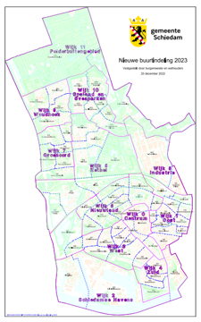 Een directe koppeling aan de vastgestelde wijk- en buurtkaart voor Schiedam voorkomt onduidelijkheid over - en omissies in het aangewezen gebied. De uitbreiding naar de wijk West is verwerkt in de bijlage.