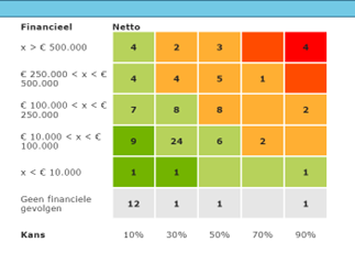 Het gevolg van een risico drukken we uit in geld: wat is de financiële impact wanneer het risico optreedt?